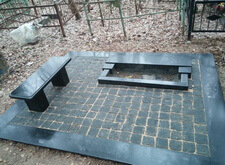 Первым делом на месте захоронения был проведен демонтаж всего, что там было. Сооружен бетонный ленточный фундамент. Уложена гранитная подложка под ограду, подставка под памятник, цветник и лавочка, также все свободное пространство могилы закрыто гранитной брусчаткой. Кстати, изначально лавочка была установлена иначе, чем обсуждалось и ее пришлось переустановить, хотя на могиле именно первый вариант установки был более привлекателен.